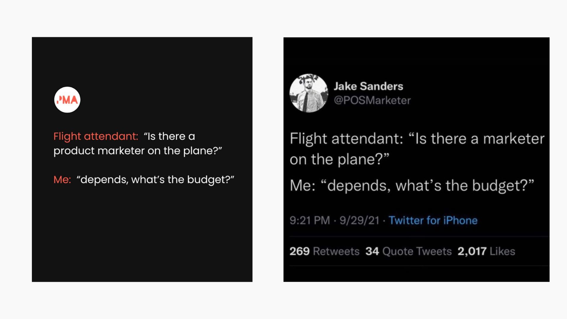 Just this morning, as I started to write this very article, I woke up to a TON of LinkedIn notifications. Someone at the Product Marketing Alliance LinkedIn social team, thought it would be cute to steal my dumb joke, and make it look like they wrote it.